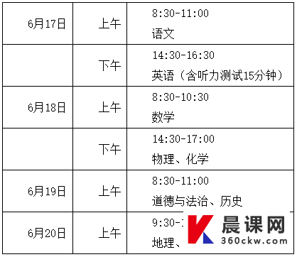 初三年级文化科目考试时间为6月17日至6月19日,初二年级文化科目考试时间为6月20日。体育与健康考试和物理、化学、生物实验操作考核时间由各设区市自行安排。