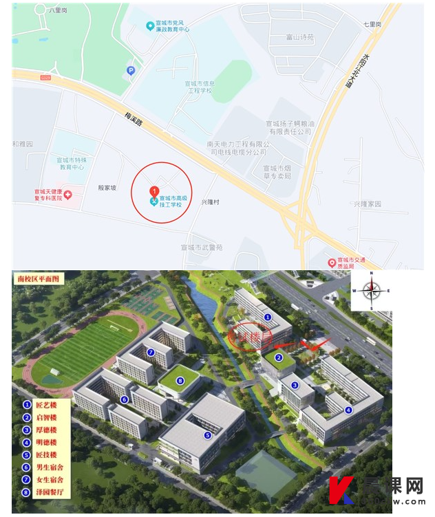 宣城市高级技工学校(匠艺楼2-4层)(宣城市宣州区梅溪路与兴隆路交叉口西南角(宣城市信息工程学校对面,考生从北门进入))