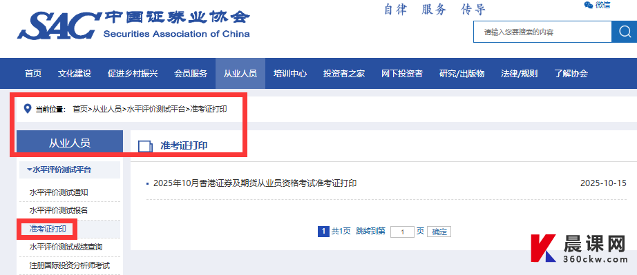 2025年10月太原证券从业考试准考证打印入口:中国证券业协会(https://www.sac.net.cn/)